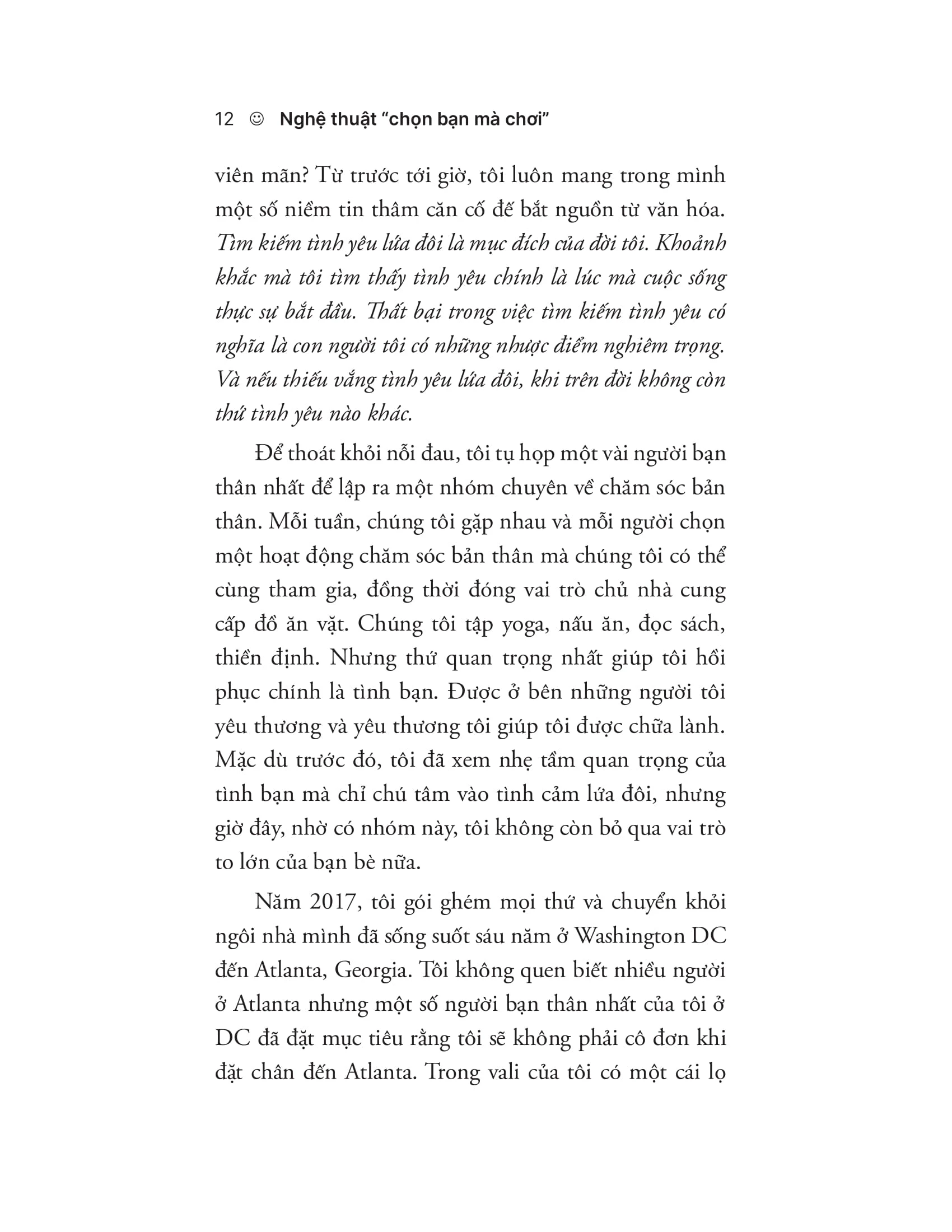 - Lợi ích của các mối quan hệ bạn bè: Tác giả đưa ra nhiều lợi ích của tình bạn thuần khiết, như cảm giác thuộc về, kết nối sâu sắc hơn với người khác và cải thiện sức khỏe tâm lý. Nghiên cứu còn cho thấy tình bạn có thể giúp chúng ta sống lâu hơn.