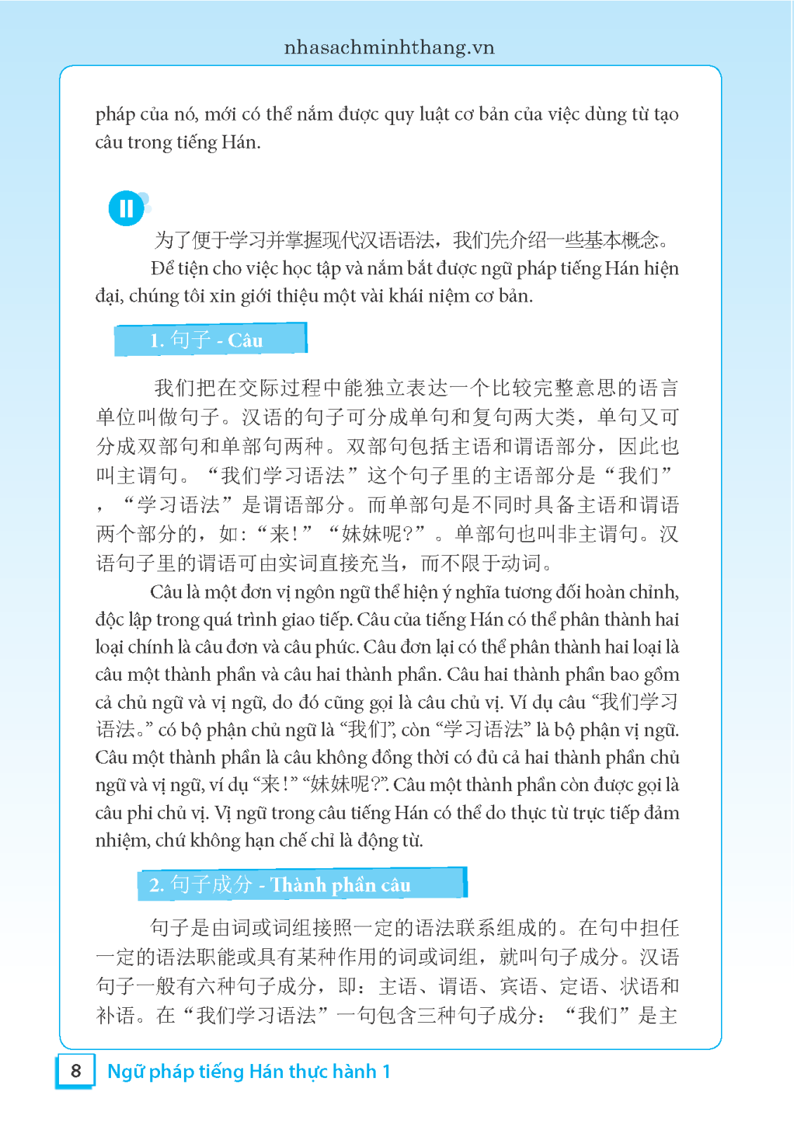 Chúng tôi mong muốn cuốn “Ngữ pháp tiếng Hán thực hành” sẽ giúp người học có cái nhìn tổng quan hơn về hệ thống ngữ pháp tiếng Hán hiện đại để người học có thể lấy đó làm cơ sở thực hành tốt các kỹ năng nghe - nói - đọc - viết và dịch được chuẩn xác.