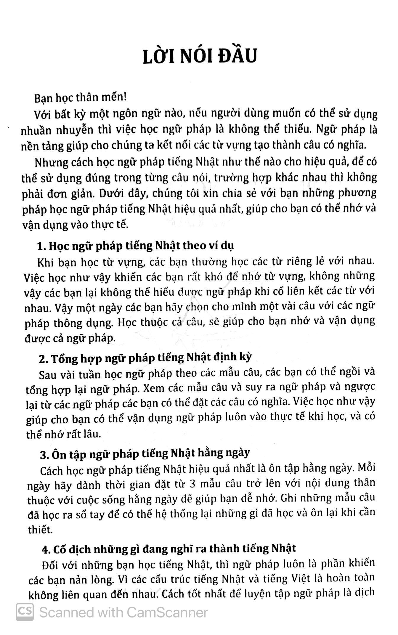 Hẳn các bạn đều biết ngữ pháp có vai trò đặc biệt quan trọng trong việc học một ngôn ngữ, vì nó là nền tảng bổ trợ đắc lực cho các kỹ năng: nghe, nói, đọc, viết. Muốn thực hành các kỹ năng khác một cách hiệu quả bạn phải nắm chắc được kiến thức ngữ pháp. Biết tiếng Nhật bạn không chỉ có cơ hội được giao tiếp, tìm hiểu về văn hóa độc đáo của đất nước mặt trời mọc này mà còn có rất nhiều cơ hội để phát triển công việc. Cuốn sách là tổng hợp những chủ điểm ngữ pháp từ cơ bản nhất một cách dễ hiểu, kèm theo đó là giải thích và các ví dụ minh họa sinh động nhằm giúp các bạn dễ dàng nắm bắt.