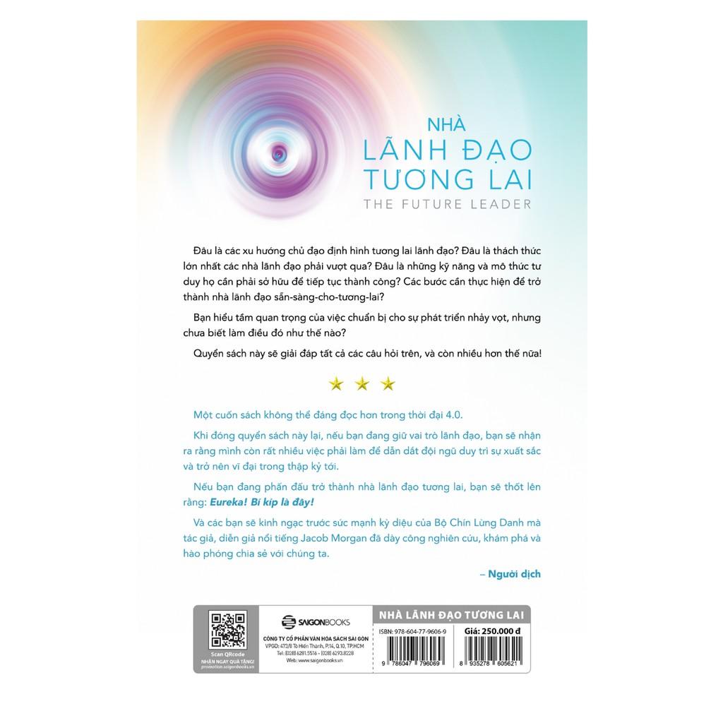 Nếu nhìn từ bên ngoài, bạn sẽ nhanh chóng nhận ra rằng thuật lãnh đạo mười năm trước không giống thuật lãnh đạo hôm nay và quan trọng hơn, cách lãnh đạo hôm nay cũng không phải là cách lãnh đạo phù hợp với mười năm tới. Thế giới đổi thay từng ngày, nên bạn cũng cần phải thay đổi! Hãy cùng bắt đầu sự thay đổi đó bằng quyển sách Nhà lãnh đạo tương lai của tác giả Jacob Morgan!