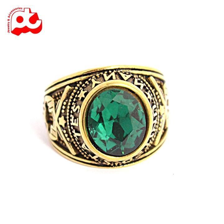 Mua tại TiktokNhẫn nam đẹp cao cấp thời trang titan thép không gỉ kiểu nhẫn mỹ mạ vàng trangsucpt đá xanh lá PTNNA219