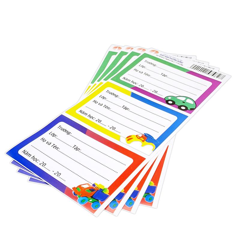 Nhãn vở dạng đề can tiện dụng, bạn chỉ cần bóc phần giấy đằng sau và dán vào sách vở là có thể sử dụng được.