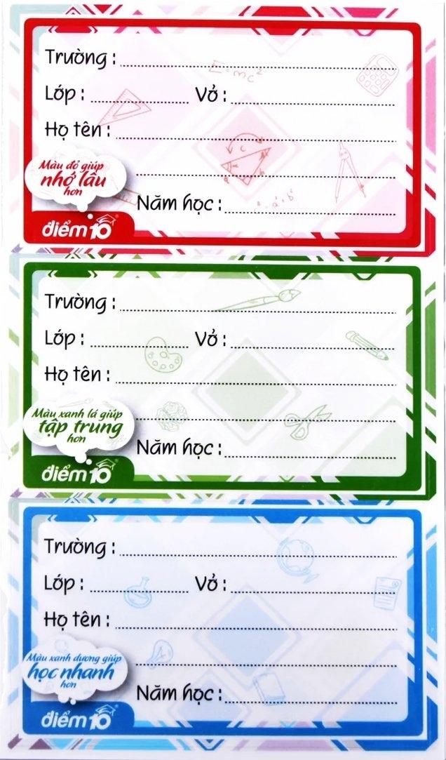 - Xấp 40 Nhãn Vở Thiên Long TP-NBl03 dùng để ghi họ tên đính ở tập sách vở giúp các em phân biệt được các môn học khác nhau, tạo hứng thú khi mở sách