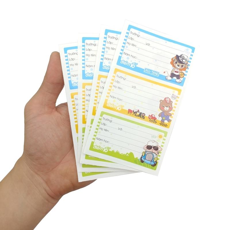 Bóc tách các tờ nhãn dán ra khỏi xấp sau đó dán nhãn vở lên quyển tập, sách cần sử dụng và ghi thông tin lên trên bề mặt nhãn vở.
