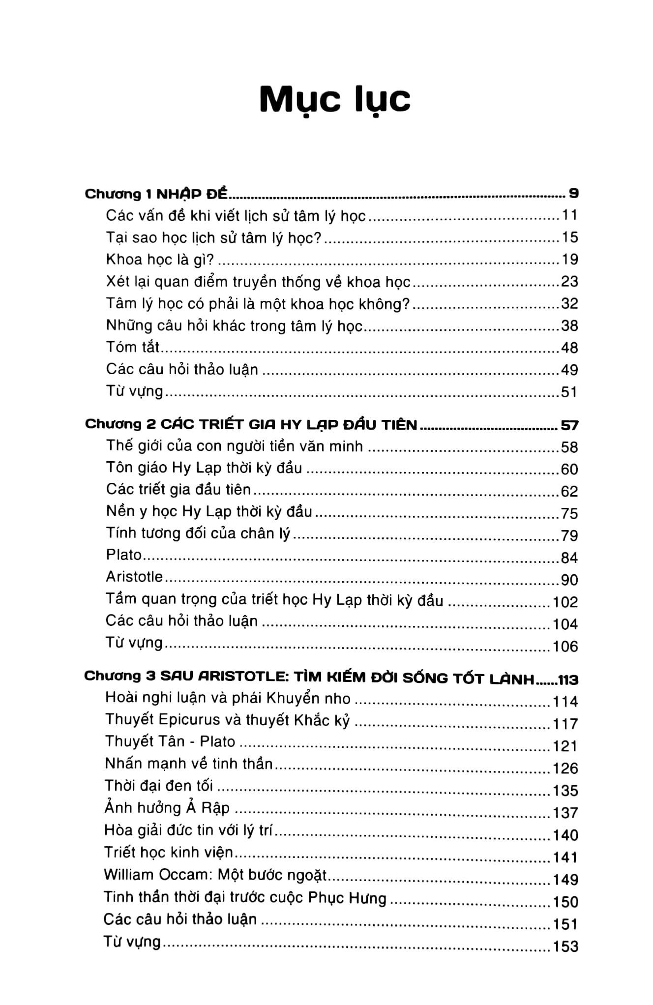 Mục đích chính của NHẬP MÔN LỊCH SỬ TÂM LÝ HỌC là xem xét các nguồn gốc của tâm lý học hiện đại, và chứng minh rằng, phần lớn sự quan tâm của các nhà tâm lý học ngày nay là những phát biểu về các đề tài vốn đã là thành phần của tâm lý học trong hàng trăm, hay trong nhiều trường hợp, là hàng ngàn năm nay. Sách cho phép người đọc đặt tâm lý học hiện đại trong viễn tượng lịch sử, hiểu tâm lý học hiện đại đầy đủ hơn, nhận ra những gì thịnh hành trong tâm lý học thì thường được quyết định bởi các yếu tố xã hội và tâm lý, thấy được các sai lầm của quá khứ để không lặp lại chúng một lần nữa.