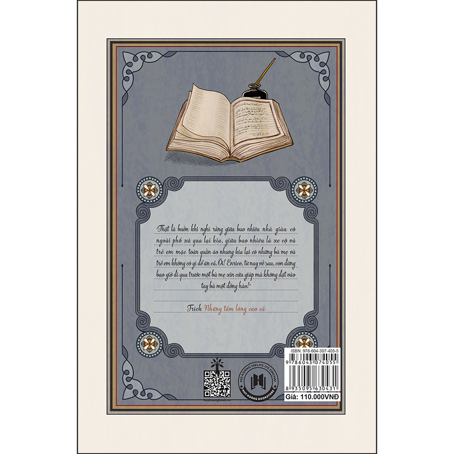 "Thật là buồn khi nghĩ rằng giữa bao nhiêu nhà giày có ngoài phố xá qua lại kia, giữa bao nhiêu xe cộ và trẻ em mặc toàn quần áo nhung kia lại có những bà mẹ và trẻ em không có gì để ăn cả. Ôi Enrico, từ nay về sau, con đừng bao giờ đi qua trước một bà mẹ xin cứu giúp mà không đặt vào tay bà một đồng hào!"
