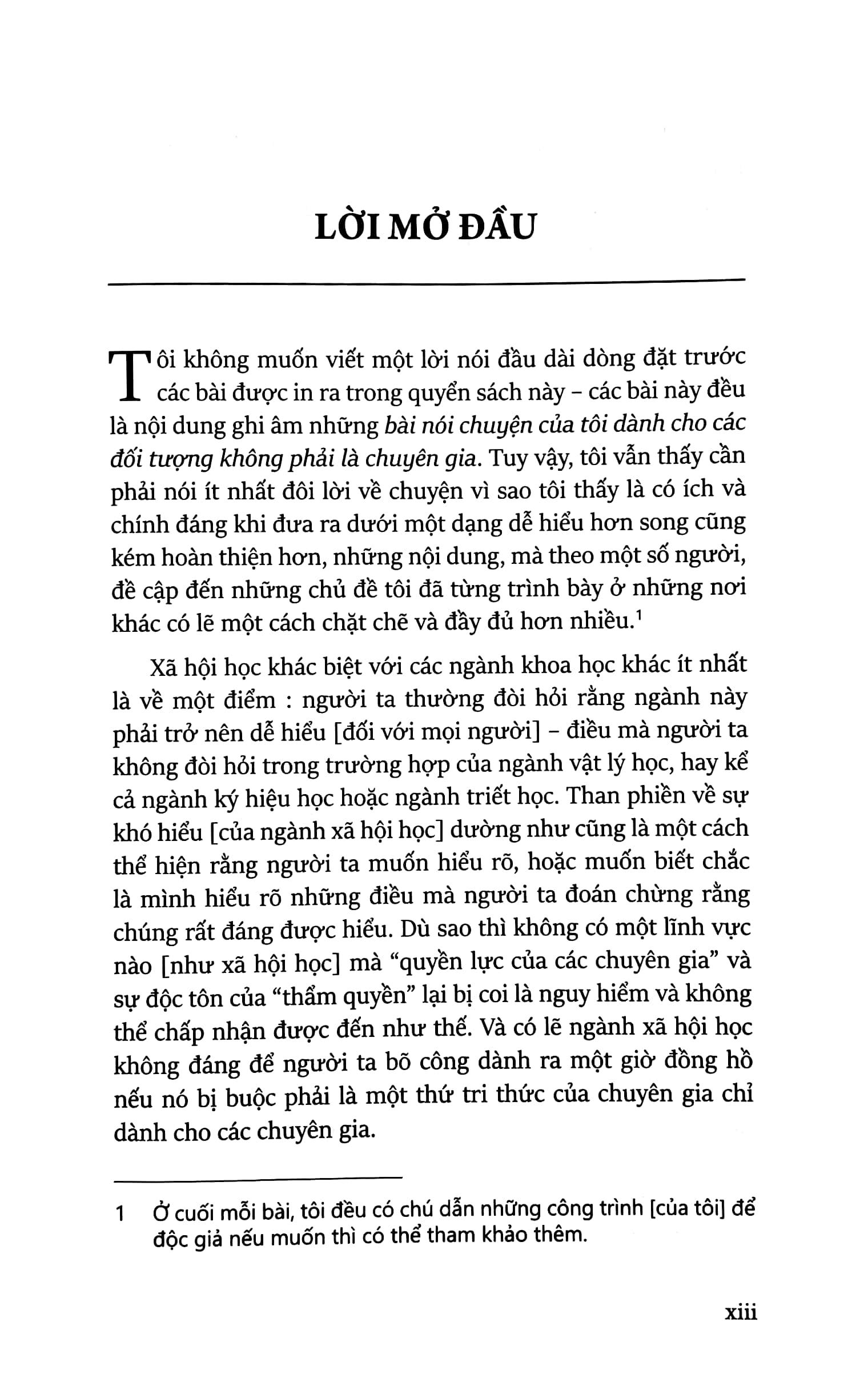 Cái thú vị của cuốn sách này là nó tập hợp các bản ghi chép những cuộc phỏng vấn sinh động của nhiều phóng viên với P. Bourdieu về những vấn đề nóng hổi của xã hội học gắn liền với thời sự nước Pháp trong những năm nửa sau của thế kỷ XX. Cuốn sách đề cập trực diện nhiều vấn đề cơ bản và khá gai góc của xã hội học trong bối cảnh đời sống chính trị-xã hội của nước Pháp mấy chục năm trở lại đây.