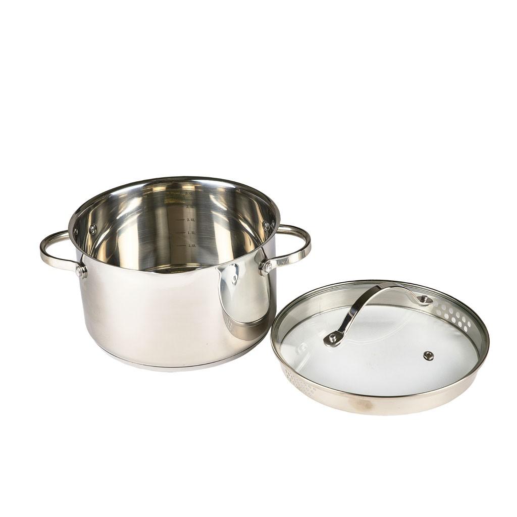 Nồi dung tích 3.0L có thang đo mực nước bên trong nồi. Nắp thủy tinh với chức năng lọc ở hai bên đảm bảo thức ăn bên trong không bị trôi ra ngoài khi chắt