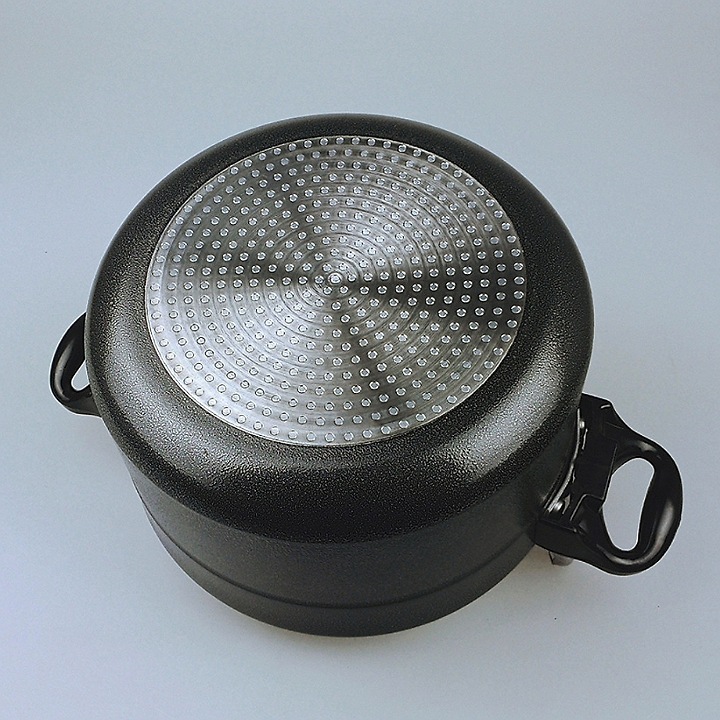- Hợp kim nhôm có đặc tính bền bỉ, chịu được lực tốt, không hoen rỉ. Ngoài ra, nó còn có khả năng dẫn nhiệt cực tốt (chỉ đứng thứ 2 sau đồng), tỏa nhiệt đều khắp bề mặt nên không sợ cháy thức ăn, khả năng giữ nhiệt lâu hơn rất thích hợp khi nấu các món ăn cần ủ nóng thời gian dài SỬ DỤNG NHỰA CÁCH NHIỆT VỚI ĐỘ BỀN CAO