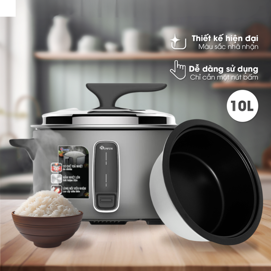 Nồi cơm luôn là sản phẩm thiết yếu sử dụng trong gia đình, trường học, nhà hàng, quán ăn…biết được tiện ích đó, nhãn hàng Sowun luôn luôn đổi mới bắt kịp xu hướng, một trong những sản phẩm đó là Nồi cơm điện 14 Lít Sowun SW 6938 với dung tích cực lớn, thiết kế hiện đại, đa dạng sử dụng ở mọi nơi, phục vụ số lượng thành viên lớn chỉ với một lần nhấn nút.
