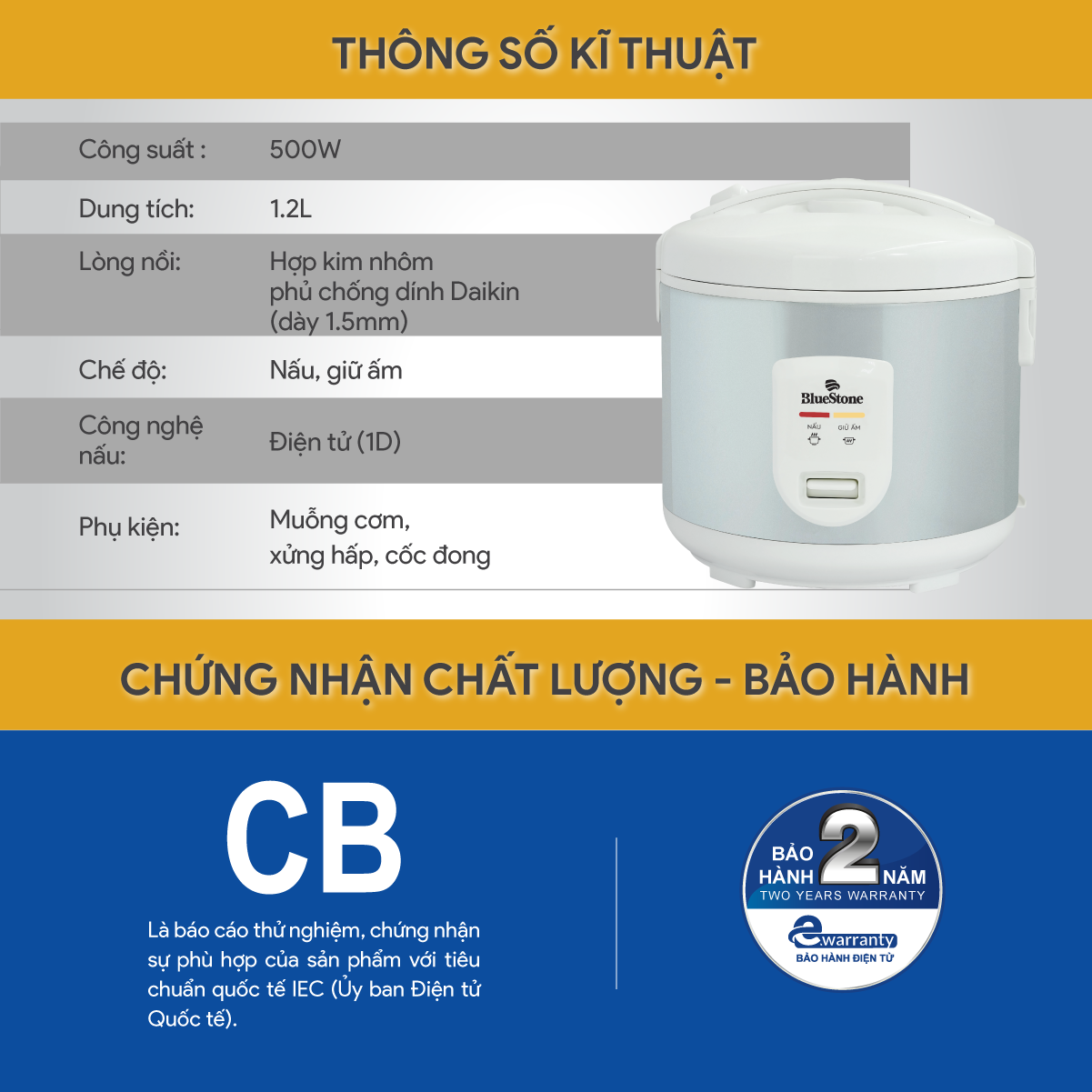 Tổng quan và hướng dẫn sử dụng Nồi cơm nắp gài BlueStone 1.8 lít RCB-5520