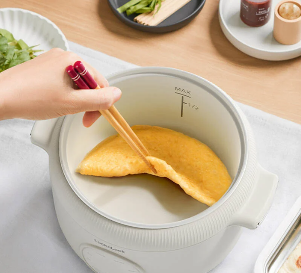 ✨Nồi điện đa năng LocknLock Digital multipot EJP186VY lòng nồi chống dính, có chức năng hẹn giờ, dung tích 1.2L - Màu ngà - Hàng chính hãng