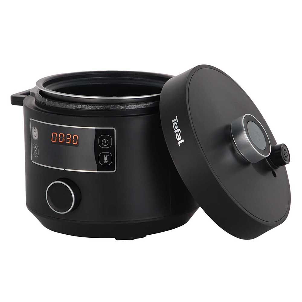Nồi Áp Suất Đa Năng Tefal CY754830 Turbo Cuisine Nồi Áp Suất Đa Năng Tefal CY754830 Turbo Cuisine là một thiết bị nấu ăn hữu ích mà bạn có thể sử dụng để chuẩn bị các công thức nấu ăn phức tạp hay đơn giản. Nồi có kích thước 5 lít . Nếu bạn thích nấu món thịt hoặc rau hấp, thì bạn sẽ thích thú với mô hình này. Tất cả những gì bạn phải làm là chọn chương trình nấu ăn mong muốn và thiết bị sẽ đảm nhiệm mọi việc khác. Giúp nấu ăn nhanh hơn gấp 3 lần  Tefal CY754830 Turbo Cuisine với thiết kế nắp nồi kín khít cùng với áp suất phù hợp, giúp việc nấu nướng sẽ nhanh hơn gấp 3 lần so với cách nấu ăn truyền thống bằng bếp gas hay bếp điện. Giúp tiết kiệm đáng kể thời gian nấu nướng cho mọi người, nhất là những người bận rộn. Thiết kế đặc biệt được cấp bằng sáng chế của Tefal Nồi Áp Suất Đa Năng CY754830 Turbo Cuisine có thiết kế hình cầu đặc biệt cho bộ phận lòng nồi. Đây là thiết kế được cấp bằng sáng chế độc quyền của Tefal, thiết kế giúp nhiệt độ được di chuyển đa chiều trong lòng nồi giúp thức ăn được nấu chín đều, ngon hơn. Trang bị 10 chương trình nấu tự động Nồi Áp Suất Đa Năng Tefal  Turbo Cuisine được thiết kế giúp bạn có thể sử dụng thay thế cho nhiều thiết bị nấu nướng khác. Với 10 chương trình nấu tự động như: Súp, Xào, Hấp, Nấu cơm, Sữa chua, Làm bánh,. Dễ dàng sử dụng với bảng điều khiển trực quan Nồi Áp Suất Đa Năng Tefal CY754830 Turbo Cuisine mang đến cho khách hàng một trải nghiệm nấu ăn cực kỳ đơn giản, hiệu quả ngay cả với những người sử dụng nồi áp suất lần đầu. Bảng điều khiển với đèn LED và nút xoay chọn chế độ đơn giản cùng các nút nhấn trực quan. Chế độ giữ ấm lên đến 24 giờ Với tính năng giữ ấm lên đến 24 giờ được trang bị trên Nồi Áp Suất Đa Năng Tefal CY754830 Turbo Cuisine giúp bạn luôn có được những bữa ăn ngon nhất. Cùng với đó là chức năng hẹn giờ lên đến 12 giờ cho phép bạn chủ động trong việc nấu ăn hàng ngày. Thiết kế với cơ chế an toàn cao Nồi Áp Suất Đa Năng Tefal CY754830 Turbo Cuisine được thiết kế với cơ chế xả áp suất hiệu quả, an toàn chỉ với thao tác nhấn nút, giúp an toàn với hơi nước nóng trong nồi. Các bộ phận như lòng nồi nấu, rổ hấp đều có thể sử dụng trong máy rửa bát.