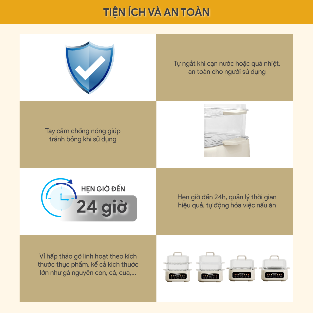 - Biến mọi bữa ăn hằng ngày trở nên phong phú. TIỆN ÍCH VÀ AN TOÀN