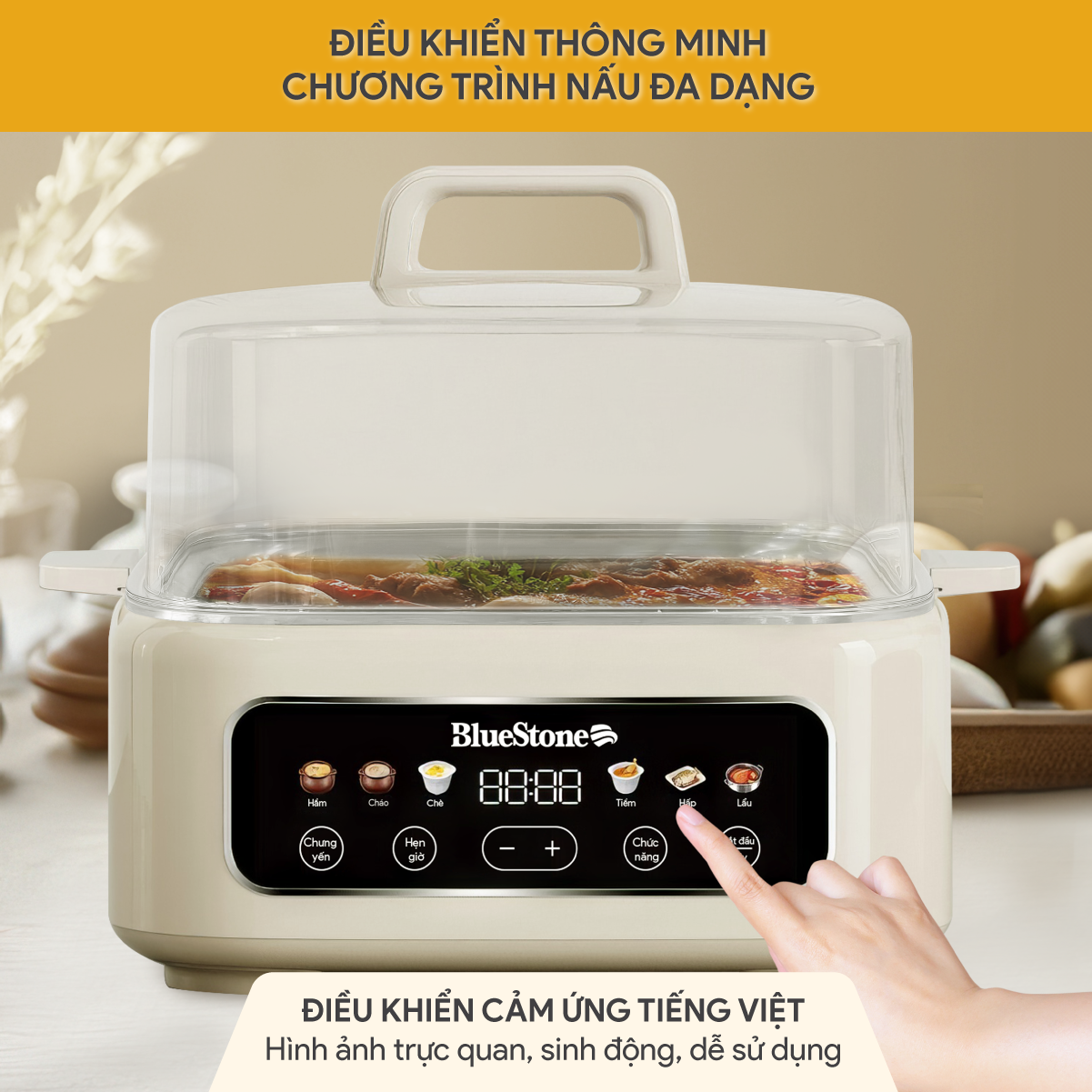 - 7 chương trình nấu: Hầm, cháo, chè, tiềm, hấp, lẩu, chưng yến.