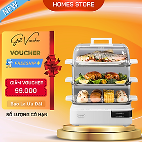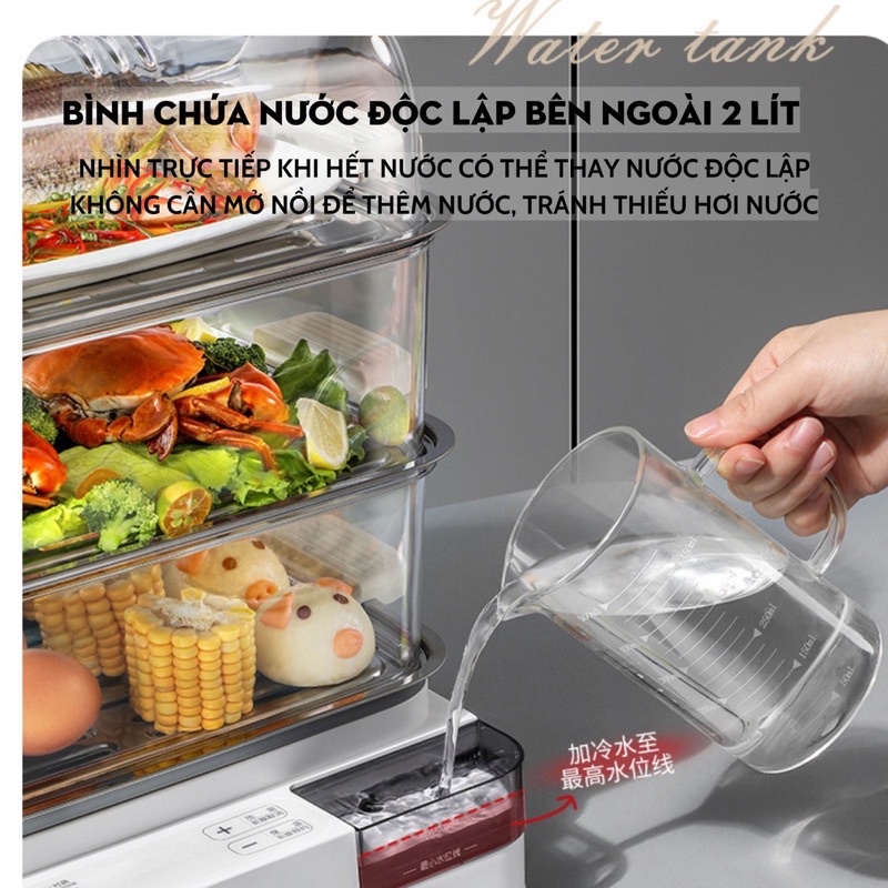 sở hữu thiết kế 3 tầng khá độc đáo, tối ưu không gian khi nấu nướng. Dung tích lên tới 10.8L hấp toàn bộ thực phẩm chỉ trong thời gian ngắn, từ rau củ quả đến hải sản, tiết kiệm thời gian hơn, thích hợp sử dụng cho gia đình đông thành viên hoặc tổ chức tiệc tùng cùng bạn bè. Ngoài ra máy hấp điện có thể được gấp gọn, giúp việc lưu trữ dễ dàng và ít chiếm không gian hơn.