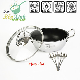 ✨Nồi inox chống dính Fivestar 3 đáy nắp kính 20cm - dùng được bếp từ - tặng 5 muỗng ăn