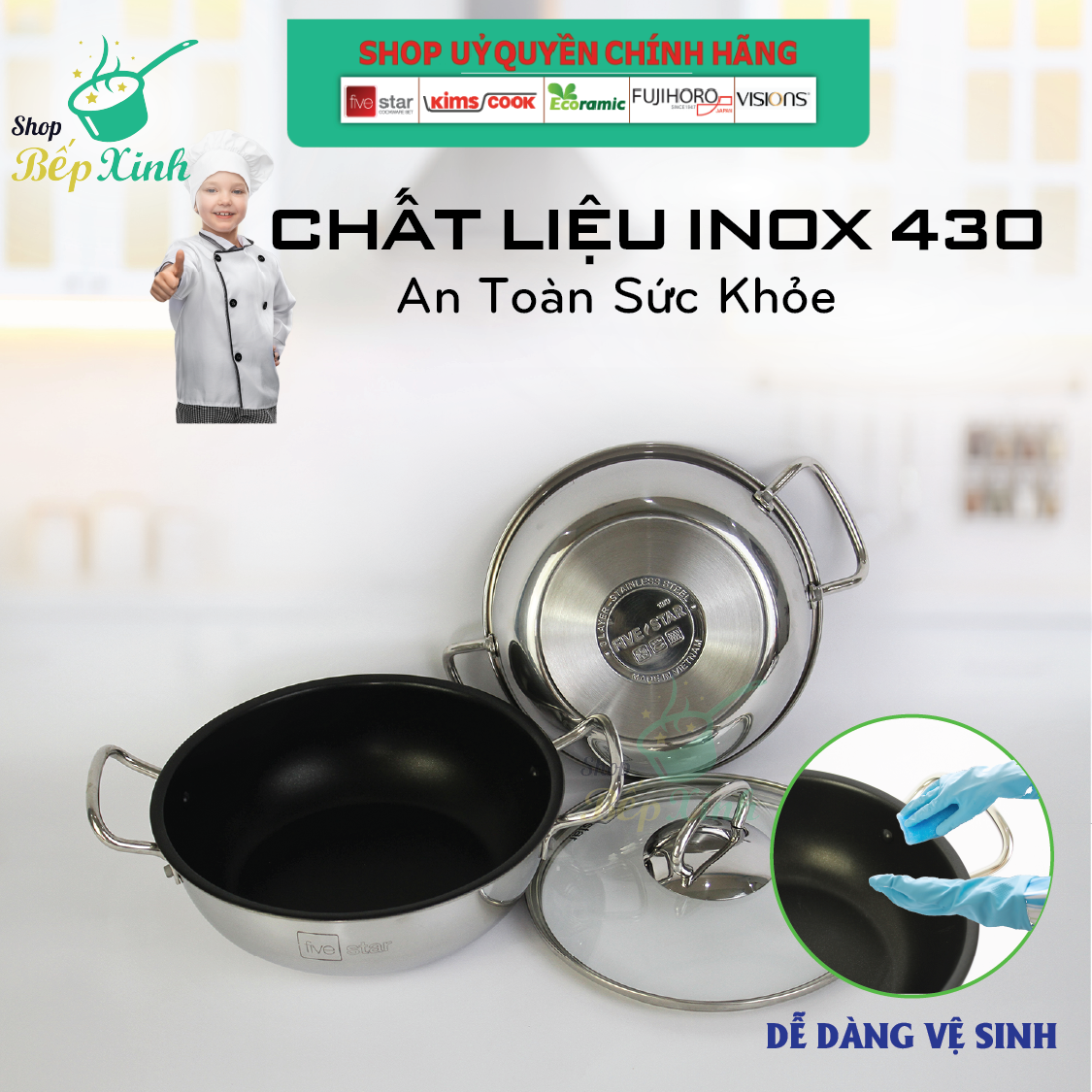Nồi Inox 304 chống dính 3 đáy Fivestar 20cm dùng bếp từ, chính hãng bảo hành 60 tháng #sanhangre