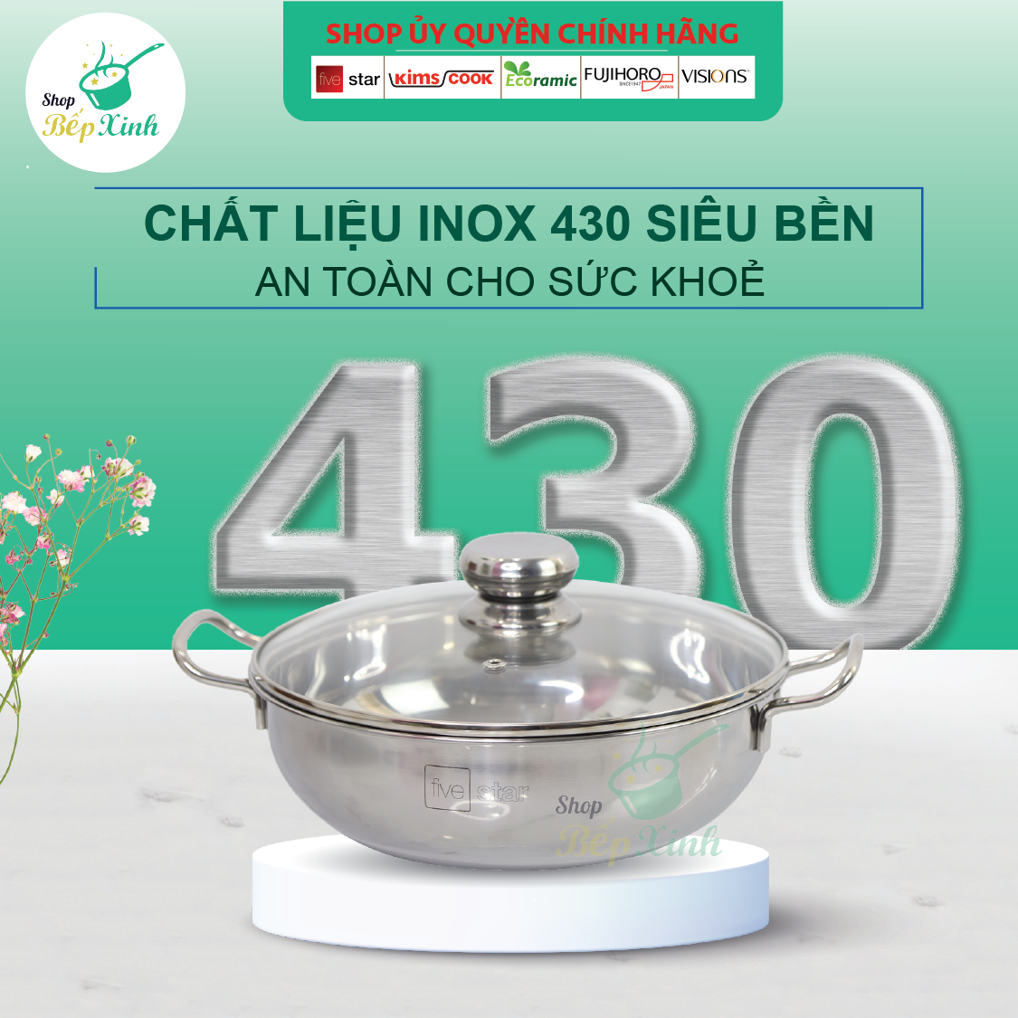 Mua tại TiktokNồi lẩu um xào inox 430 bếp từ 3 đáy Fivestar nắp kính ( 24cm / 26cm / 28cm )