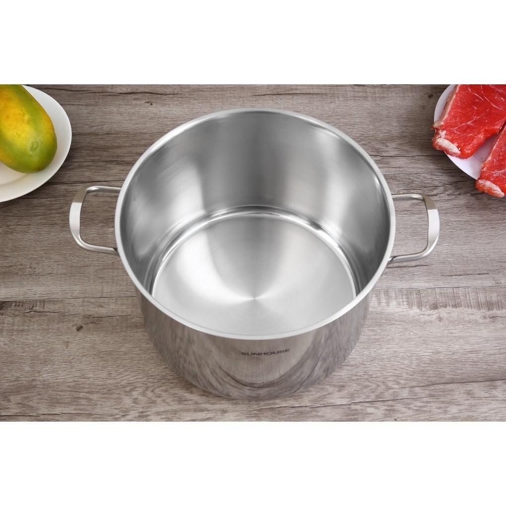 Nồi luộc gà inox 3 đáy SUNHOUSE SH28LG được làm bằng chất liệu inox cao cấp, không bị oxy hóa, kiểu dáng đẹp mắt, vung kính trong suốt, quai núm bằng inox bền đẹp, không han