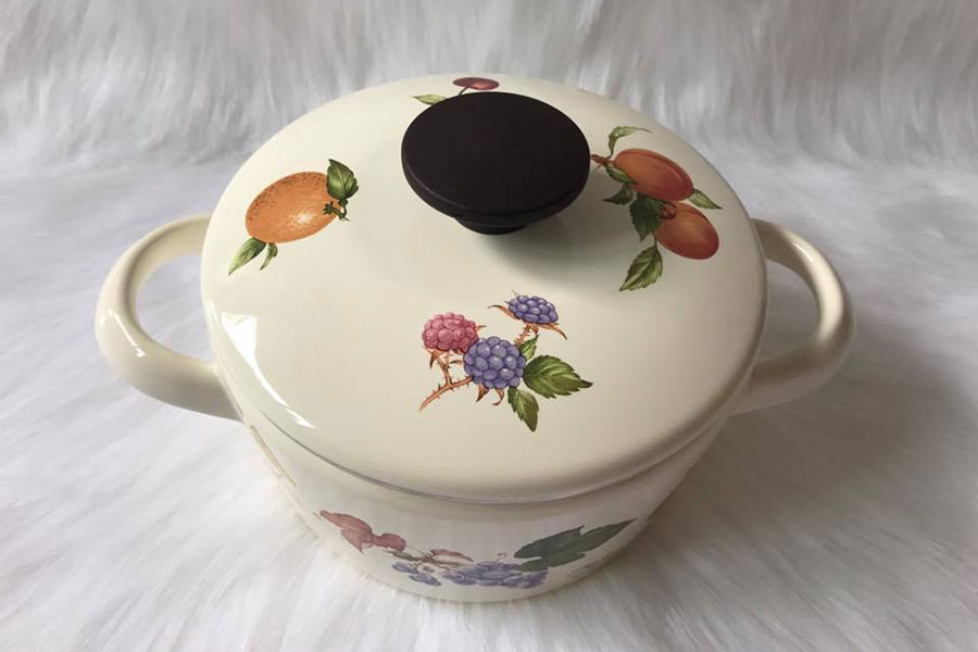 Thiết kế sang trọng, quai cầm và núm nắp chắc chắnNồi Tráng Men Hoa Văn Trái Cây Sử Dụng Bếp Từ Fujihoro FRV-16W sở hữu thiết kế tinh tế với màu sắc v&ag...