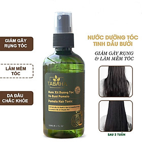 NƯỚC DƯỠNG TÓC TINH DẦU VỎ BƯỞI POMELO TABAHA 120ML Thành phần chính Nước dưỡng tóc tinh dầu bưởi (pomelo hair tonic) Tabaha 120ml: - Tinh dầu vỏ bưởi: Do có tính kháng khuẩn và