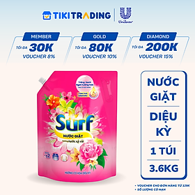 Mua tại Tiktok- Surf Nước Giặt Hương Cỏ Hoa Diệu Kỳ Túi (3.8kg) với hương cỏ hoa thơm mát, tinh tế, giúp áo quần luôn thơm tho dễ chịu.