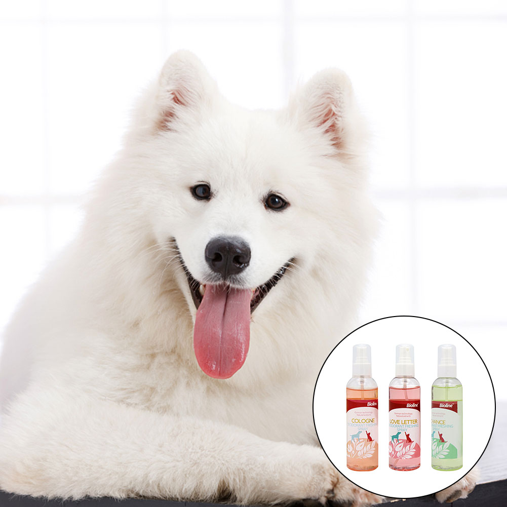 Dầu thơm thú cưng Bioline giúp nhanh chóng khử mùi hôi trên cơ thể chó mèo, tạo hương thơm mát, tự nhiên.