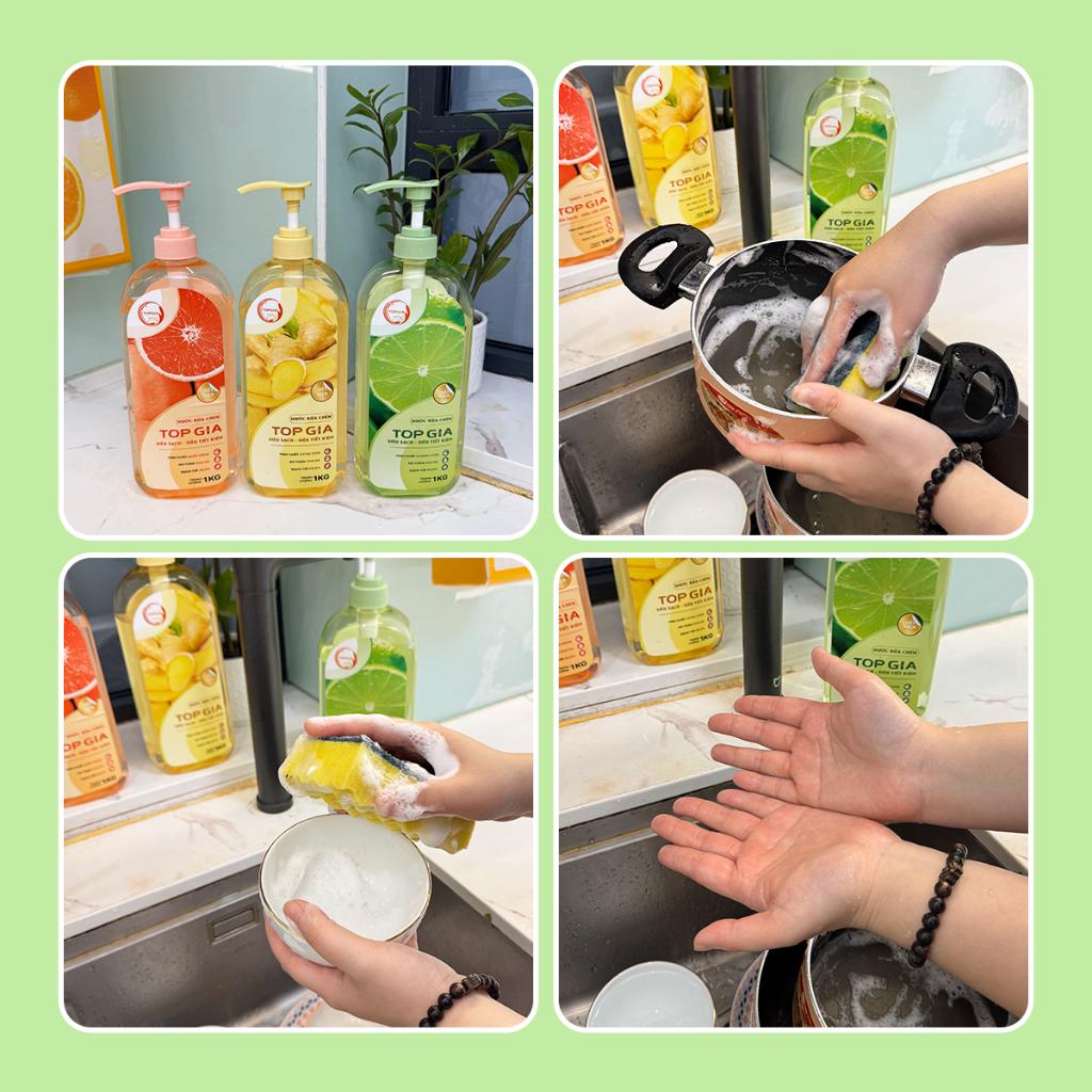 [SIÊU ƯU ĐÃI] Nước Rửa Chén 5in1 TOPGIA Tinh Chất Bưởi, Chanh, Gừng, Làm Sạch sâu #nuocruachentopgia