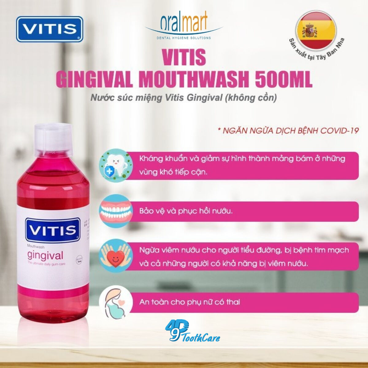 - Nước súc miệng VITIS gingival là sản phẩm dùng hàng ngày có công thức đặc biệt để cải thiện tình trạng răng miệng cho người nhạy cảm về nướu (sưng, tấy đỏ hoặc chảy máu).