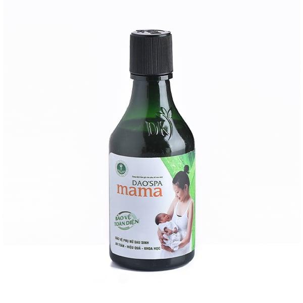 - Bước 3: Tắm xong lấy khăn lau khô người, tuyệt đối không tắm lại bằng nước thường. Ngoài tắm gội toàn thân, Dao'spa Mama còn được dùng để Xông hơi, Ngâm bồn, Tắm khô. ĐỐI TƯỢNG KHUYÊN DÙNG Phụ nữ sau sinh. THẬN TRỌNG Đối với phụ nữ sinh mổ, tránh để nước nhiễm vào vết thương. QUY CÁCH ĐÓNG GÓI Hộp 3 chai x 250ml. BẢO QUẢN Để nơi khô ráo, thoáng mát. Không tiếp xúc với ánh nắng trực tiếp. Tránh xa tầm tay trẻ em. THÔNG TIN SẢN XUẤT