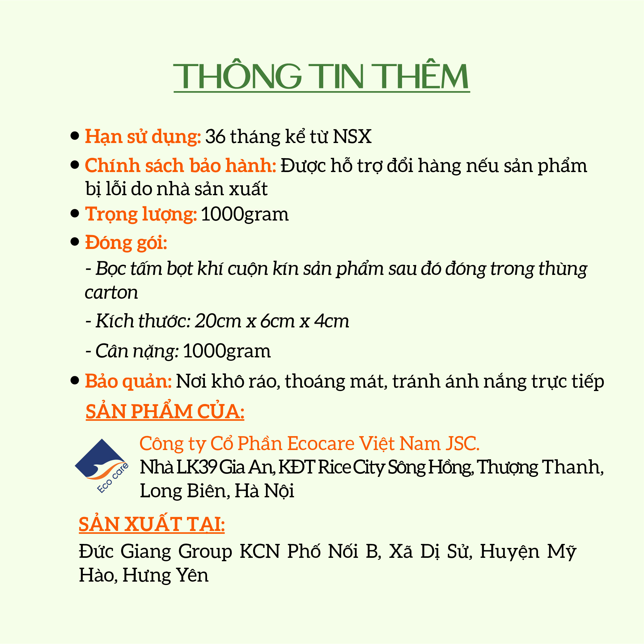 THÔNG ĐIỆP TỪ NHÀ SẢN XUẤT ECOCARE: