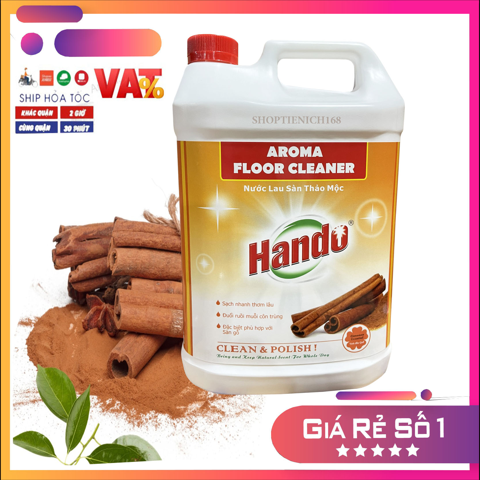 Hương thơm dịu mát lưu lại lâu trên sàn nhàVới công thức hoàn toàn mới, Nước lau sàn Hando hương quế giúp làm sạch bóng sàn nhà, đánh sạch vết bẩn và bụi bám ở mọi ngóc