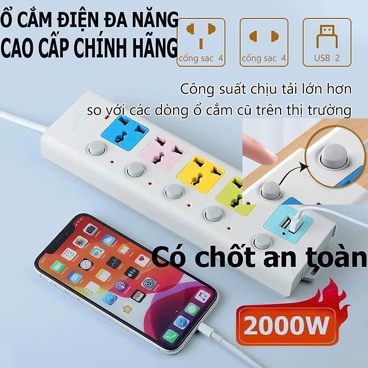 ✨Ổ Điện Thái Lan Đa Năng 4 Ổ Cắm Và 2 Cổng Usb Sạc Dây Dài 1M5 Tiện Dụng