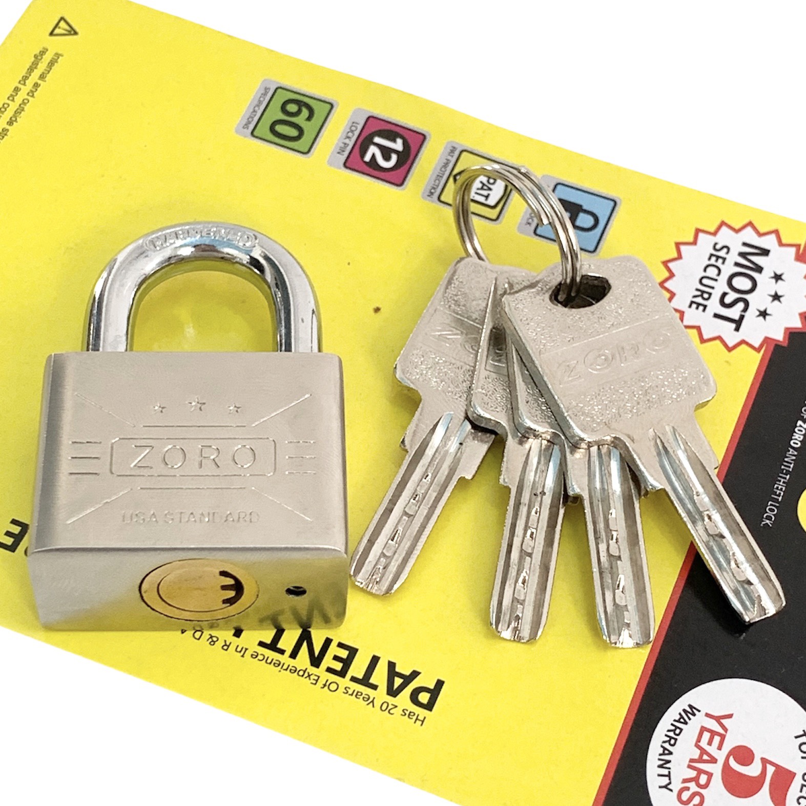 Ổ KHÓA ZORO 5 PHÂN CHÌA MUỖNG CÓ ỐP CHỐNG CẮT BẢO VỆ CÀNG • Chất liệu: Hợp kim sắt, lõi đồng thau, chịu lực tốt cứng và chắc Size khóa ngang 5cm cao 7,5cm,