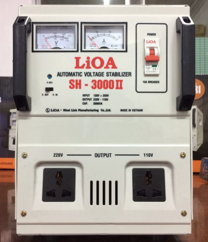 Ở điều kiện tiêu chuẩn điện hình Sin tần số 49Hz đến 62Hz, tất cả các máy ổn áp LiOA xuất xưởng đã được kiểm tra cân chỉnh để đảm bảo khi điện áp đầu vào nằm trong giới hạn của máy. Tuy nhiên, có những trường hợp lưới điện không đạt hình Sin chuẩn và trong giới hạn tần số như trên thì điện áp ra sẽ bị sai lệch, ổn áp LiOA thế hệ mới có một triết áp điều chỉnh điện áp ra có ghi chữ V-ADJ để quý khách có thể tự vi chỉnh được điện áp ra.
