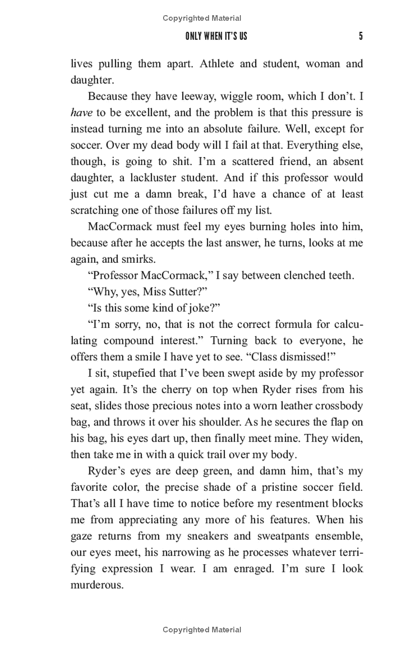 Only When It's Us is a frenemies-to-lovers, college sports romance about a women's soccer star and her surly lumberjack lookalike classmate, complete with a matchmaking professor, juvenile pranks, and a smoking slow burn. This standalone is the first in a series of novels about a Swedish-American family of five brothers, two sisters, and their wild adventures as they each find happily ever after.