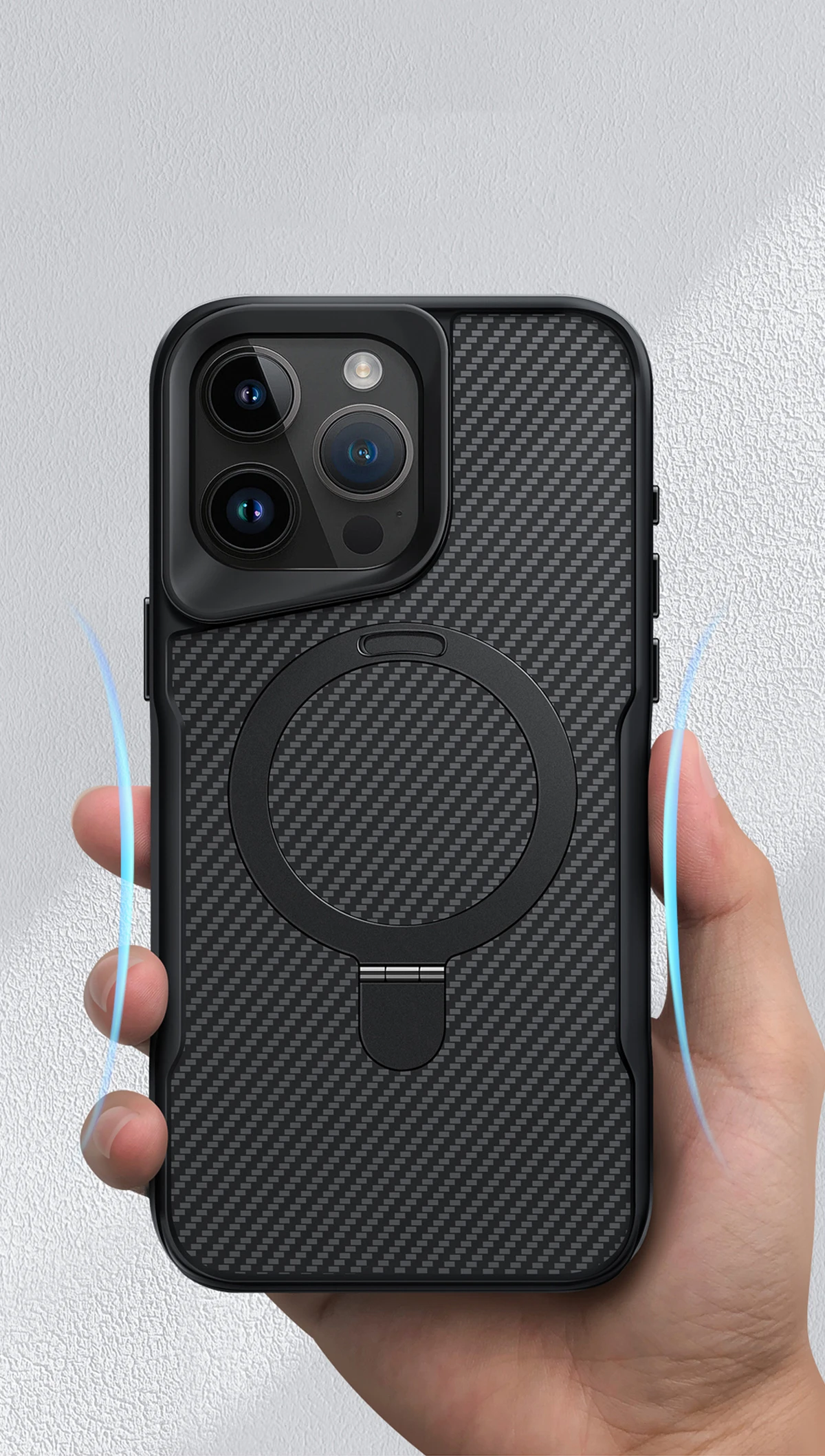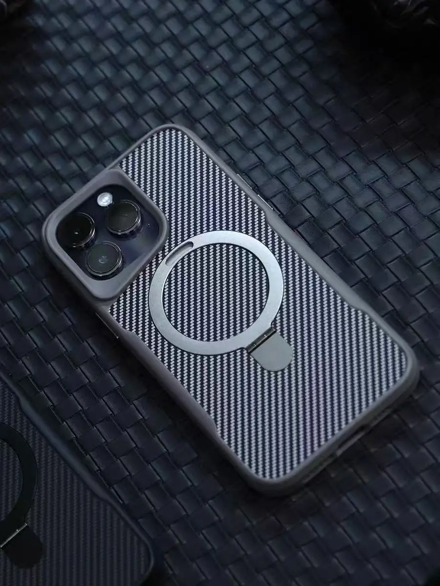 ✨Ốp lưng cho iPhone 15 Pro Max, iPhone 15 Pro hiệu Likgus Fiber hỗ trợ sạc không dây, kèm kệ chống lưng, vân carbon chống trơn trượt, chống sốc cao cấp - Hàng chính hãng