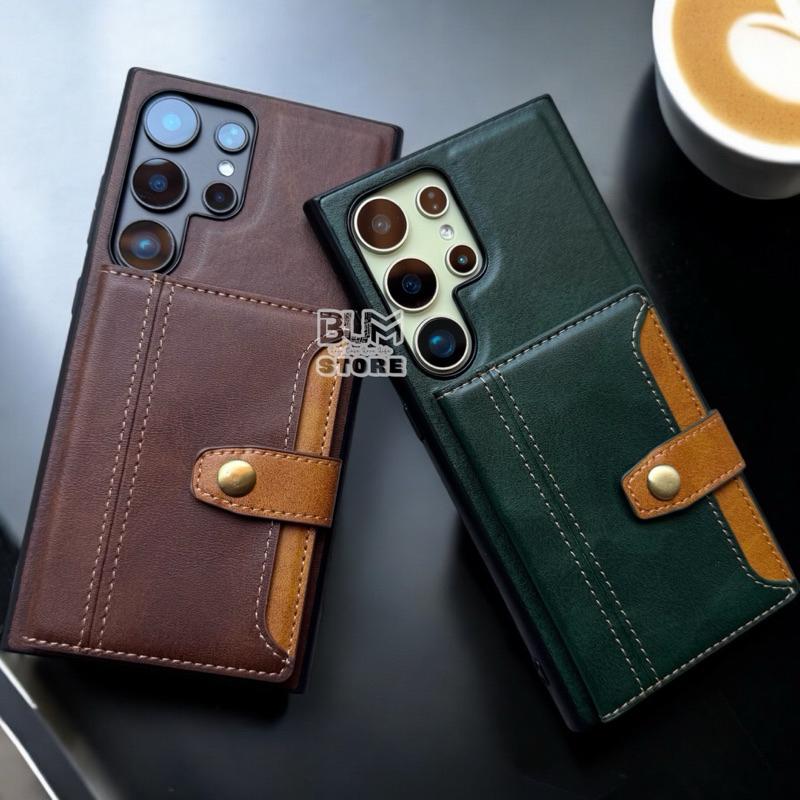 ✨Ốp Lưng Cho Samsung S25 Ultra / S24 Ultra / S23 Ultra Da Simili Có Ngăn Để Thẻ Có Quai Gài - BUM STORE GALAXY CASE