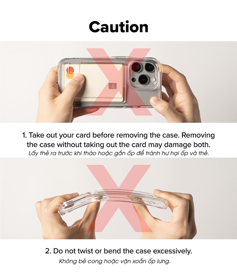 - Không bẻ cong ốp lưng hoặc vặn xoắn ốp vì có thể làm hư hại sản phẩm. Thông số kỹ thuật – Hãng sản xuất: Ringke – Dòng máy đáp ứng: iPhone 16 Pro Max (6.9-inch) – Chất liệu: PC + TPU (mặt lưng ốp nhựa cứng PC, viền nhựa dẻo TPU) – Kiểu dáng: Ốp lưng dạng thanh có ngăn đựng thẻ – Màu sắc: Clear Hình ảnh sản phẩm