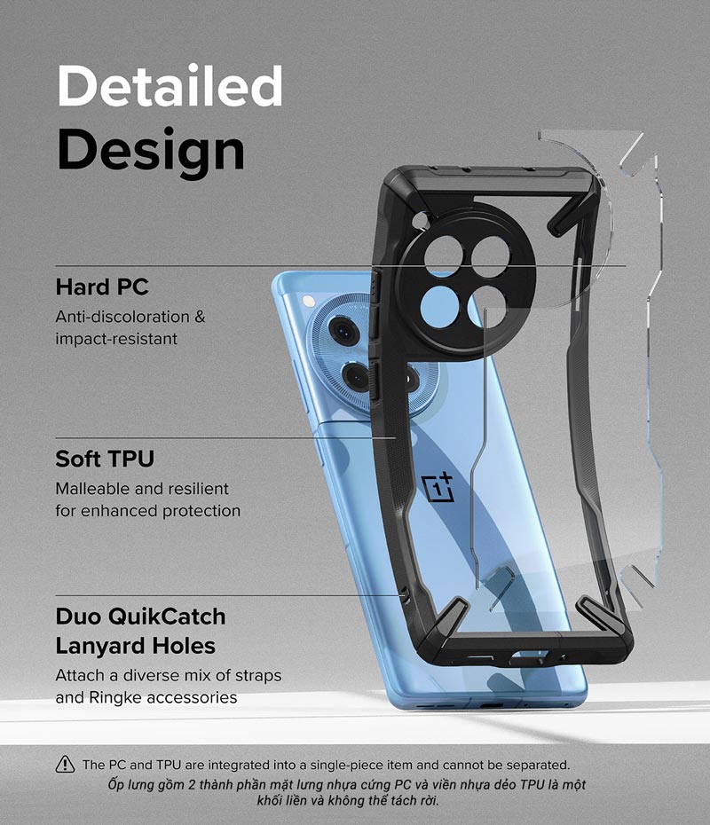 Sản phẩm ốp lưng OnePlus 12R của Ringke dòng Fusion X với thiết kế chống sốc bảo vệ điện thoại của bạn cực tốt, cùng với những gờ nổi ở mặt lưng mang đến cảm giác cầm nắm vô cùng chắc chắn.