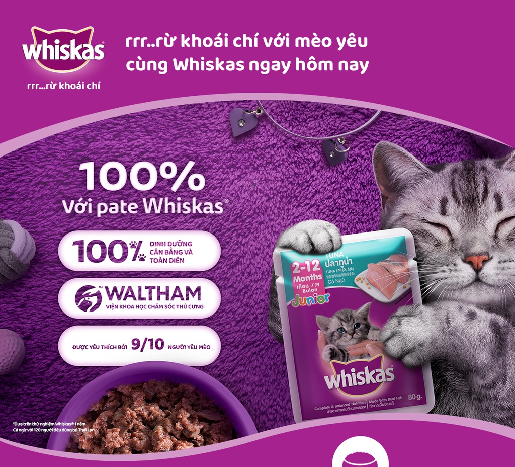 Pate Whiskas 85g cho mèo con và mèo lớn