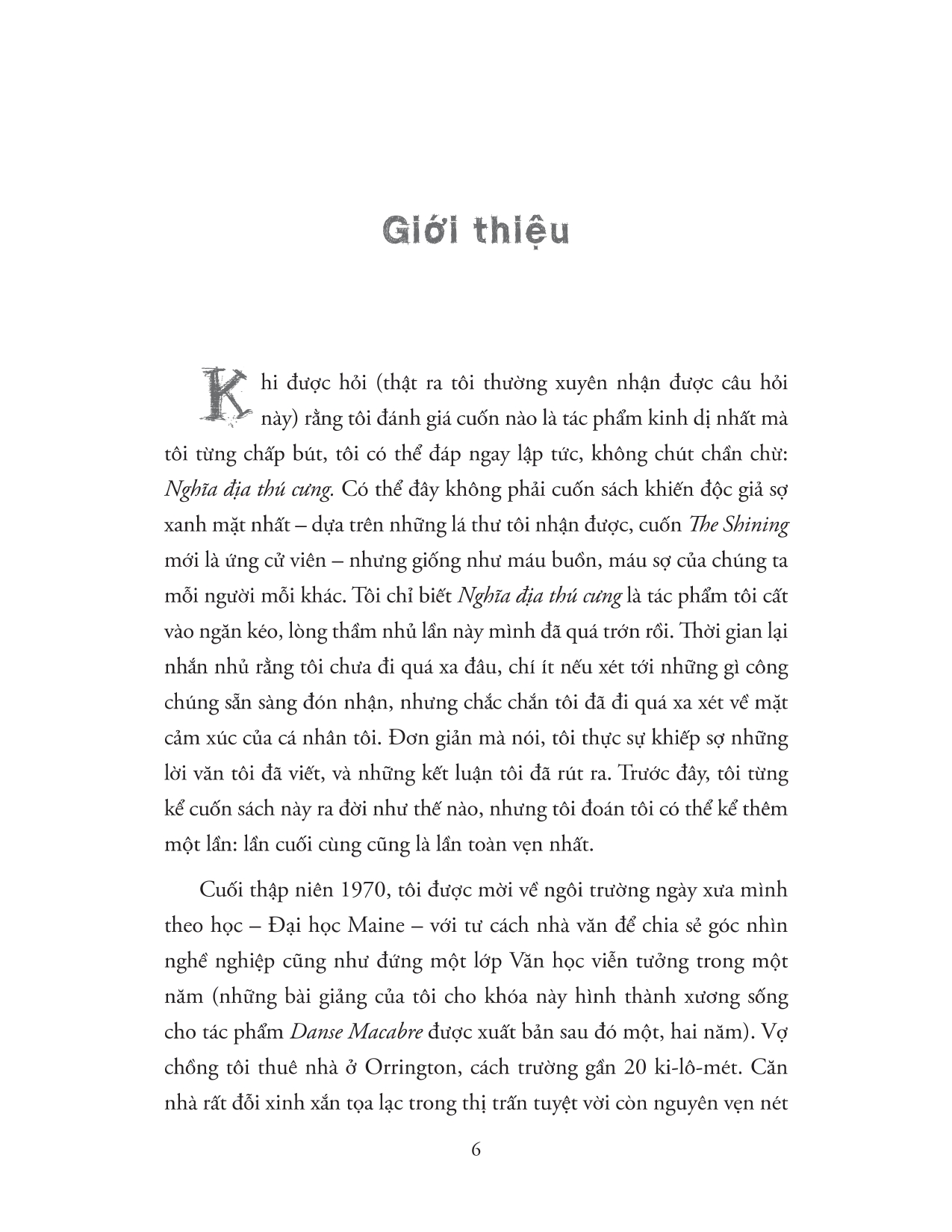 Pet Sematary - Nghĩa Địa Thú Cưng   Khi Tiến sĩ Louis Creed nhận một công việc mới và đã cùng cả gia đình chuyển đến thị trấn nông thôn bình dị ở Ludlow, Maine. Ngay cả khi đã yên ấm trong căn nhà mới, Louis vẫn không thể tin nổi khởi đầu tuyệt vời này đã trở thành sự thật. Bất chấp sự yên bình của vùng quê Ludlow, nơi đây vẫn tiềm ẩn một mối nguy đang rình rập. Những chiếc xe tải lao vun vút trên con đường phía bên ngoài ngôi nhà cổ xinh đẹp của Creed vì một điều…   Khu nghĩa địa tạm bợ trong khu rừng gần đó, nơi nhiều thế hệ trẻ em đã chôn cất những con thú cưng yêu quý của chúng.   Ngay sau đó, Louis liên tiếp nhận được những lời cảnh báo từ cả thực tế lẫn từ sâu thẳm trong cơn ác mộng của anh rằng anh đừng mạo hiểm vượt ra ngoài ranh giới của nghĩa địa nhỏ này, cũng là vị trí của một khu chôn cất khác với những lời hứa đầy hấp dẫn và ma mị.   Louis đã bước chân vào hành trình khám phá ra sự thật bị che giấu ấy – một sự thật còn đáng sợ hơn chính cái chết.   Về tác giả:   Stephen King là tác giả của hơn 60 cuốn sách, tất cả đều là những cuốn sách bán chạy nhất trên toàn thế giới. Các tác phẩm gần đây của ông bao gồm Fairy Tale, Billy Summers, If It Bleeds, The Institute, Elevation, The Outsider, Sleeping Beauties (viết chung với con trai Owen King), và bộ ba phim Bill Hodges: End of Watch, Finders Keepers và Mr. Mercedes (chiến thắng Giải thưởng Edgar cho Tiểu thuyết hay nhất). Cuốn tiểu thuyết 22/11/63 được The New York Times Book Review bình chọn là cuốn sách hay nhất của năm 2011 và giành được Giải thưởng Sách của Thời báo Los Angeles cho thể loại Bí ẩn / Kinh dị. Các tác phẩm The Dark Tower, It, Pet Sematary và Doctor Sleep của ông đã được chuyển thể thành phim, với It hiện là phim kinh dị có doanh thu cao nhất mọi thời đại. Ông là người đã nhận được Giải thưởng Thành tựu trọn đời của Hiệp hội Nhà xuất bản Âm thanh năm 2020, Giải thưởng Dịch vụ Văn học PEN Hoa Kỳ năm 2018, Huy chương Nghệ thuật Quốc gia năm 2014 và Huy chương của Quỹ Sách Quốc gia năm 2003 cho những đóng góp xuất sắc cho nền văn học Hoa Kỳ. Anh sống ở Bangor, Maine, với vợ, tiểu thuyết gia Tabitha King.   Đánh giá về cuốn sách   Hai lần được chuyển thể thành phim (1989 và 2019). Pet Sematary bản 1989 được đánh giá là một trong những phim kinh dị "cult culture" (những bộ phim không được giới phê bình đánh giá cao, không có doanh thu lớn, không được công chúng yêu thích, nhưng được một nhóm nhỏ yêu thích cuồng nhiệt). Nhận được tận 6,6 điểm trên IMDb, có số lượng DVD bán ra rất chạy, và được nhắc đến nhiều trong các bộ phim khác. Đây là một trong những tiểu thuyết kinh dị xuất sắc và mang tính biểu tượng nhất của Stephen King.   “Hoang dại, rùng rợn và gây bấn loạn” là những tính từ mà tờ The Washington Post Book World đã dùng để miêu tả về cuốn sách bán chạy số 1 theo bình chọn của New York Times này.   Một thước phim hành động nghẹt thở! Một trong những tiểu thuyết kinh dị xuất sắc và mang tính biểu tượng nhất của Stephen King.   “Cuốn tiểu thuyết đáng sợ nhất của Stephen King.” —Publishers Weekly   “Một tác phẩm gây choáng vá King đã khiến chúng ta phải tin những điều không tưởng.” —Detroit News   “Day dứt, cuộn trào, thuyết phục và đầy ấn tượng!” —Pittsburgh Press