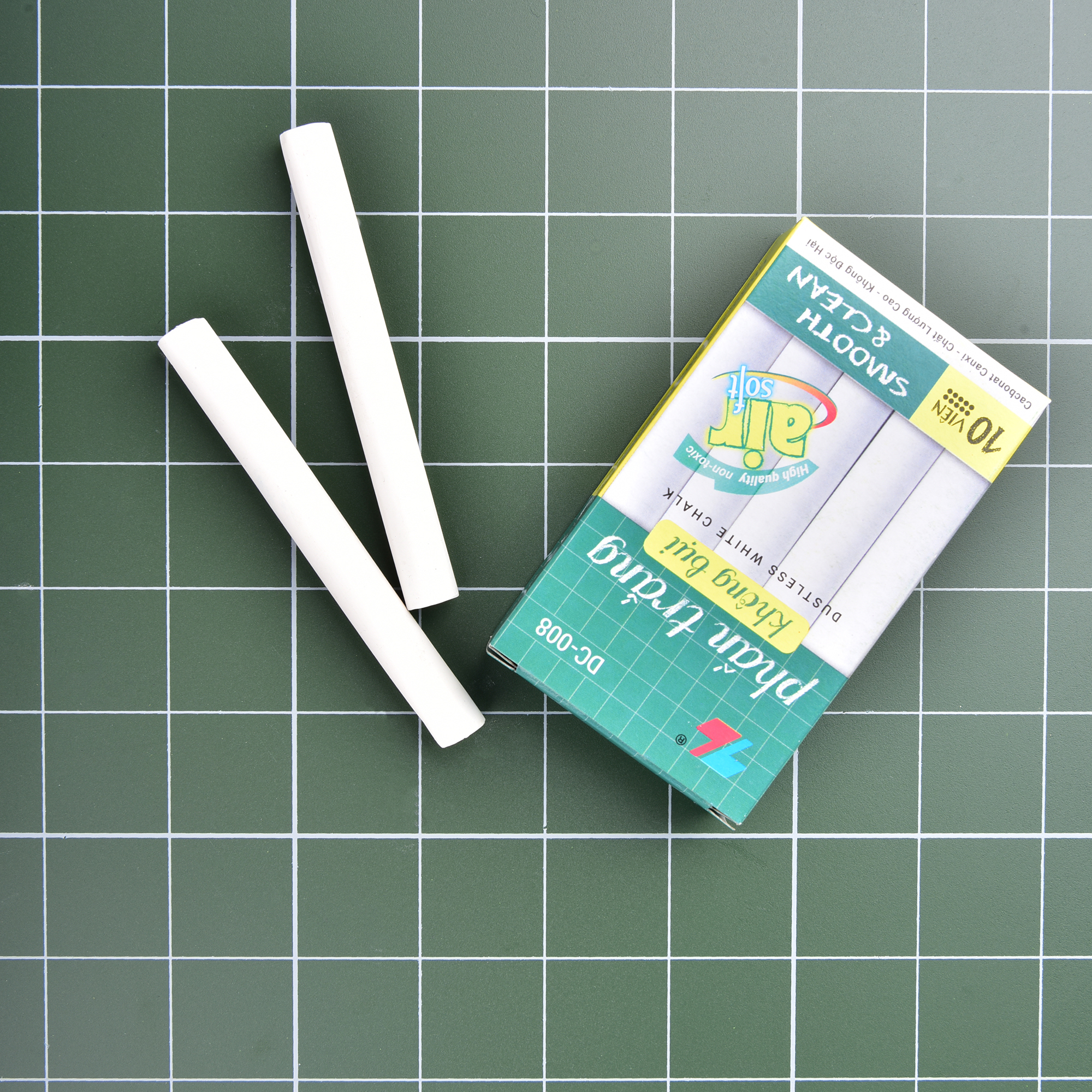 - Phấn viết nét chữ rõ ràng, êm trơn, bám bảng đều và không tạo bụi phấn, rất thân thiện với môi trường.