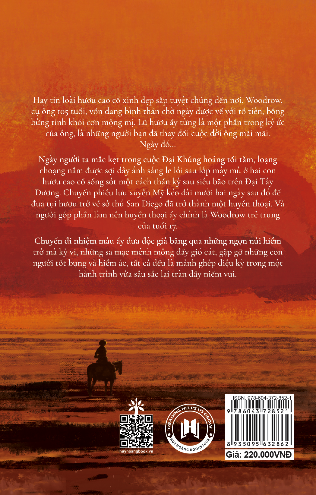 Ngày người ta mắc kẹt trong cuộc Đại Khủng hoảng tối tăm, loạng choạng nắm được sợi dây ánh sáng le lói sau lớp mây mù ở hai con hươu cao cổ sống sót một cách thần kỳ sau siêu bão trên Đại Tây Dương. Chuyến phiêu lưu xuyên Mỹ kéo dài mười hai ngày sau đó để đưa tụi hươu trở về sở thú San Diego đã trở thành một huyền thoại. Và người góp phần làm nên huyền thoại ấy chính là Woodrow trẻ trung của tuổi 17.