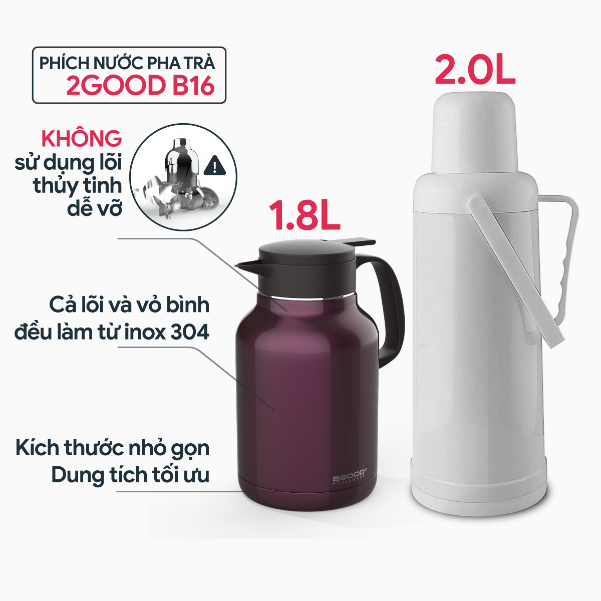 ✨Phích Pha Trà Giữ Nhiệt 2GOOD FLASK B16 (1.8L)