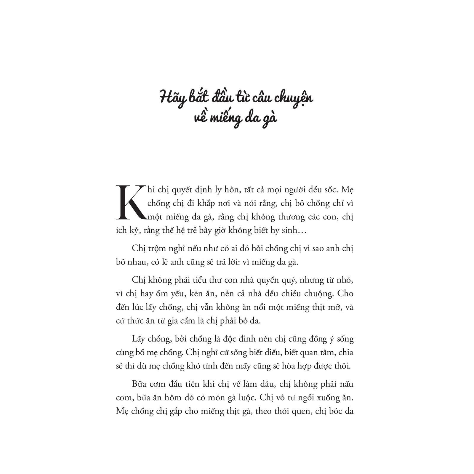 - Một nút thắt bao nhiêu năm sẽ được gỡ: Đơn giản thôi, từ lúc nãy, bạn hãy sống cho chính mình. Bạn là nhân vật chính duy nhất trong cuộc đời mình, tất cả những người xung quanh, dù là ai, chỉ là nhân vật phụ. Đã là phụ, đều có thể thay thế. Bạn đừng biến họ thành nhân vật chính, rồi cả đời xoay quanh họ, vui buồn phụ thuộc cả vào họ. Bạn làm như vậy, người ta cũng thấy áp lực, ngột ngạt lắm. Họ cũng cần sống cuộc đời mình, vui buồn theo cách họ muốn. Vì sao bạn cứ nhất thiết phải giữ họ trong tầm tay?