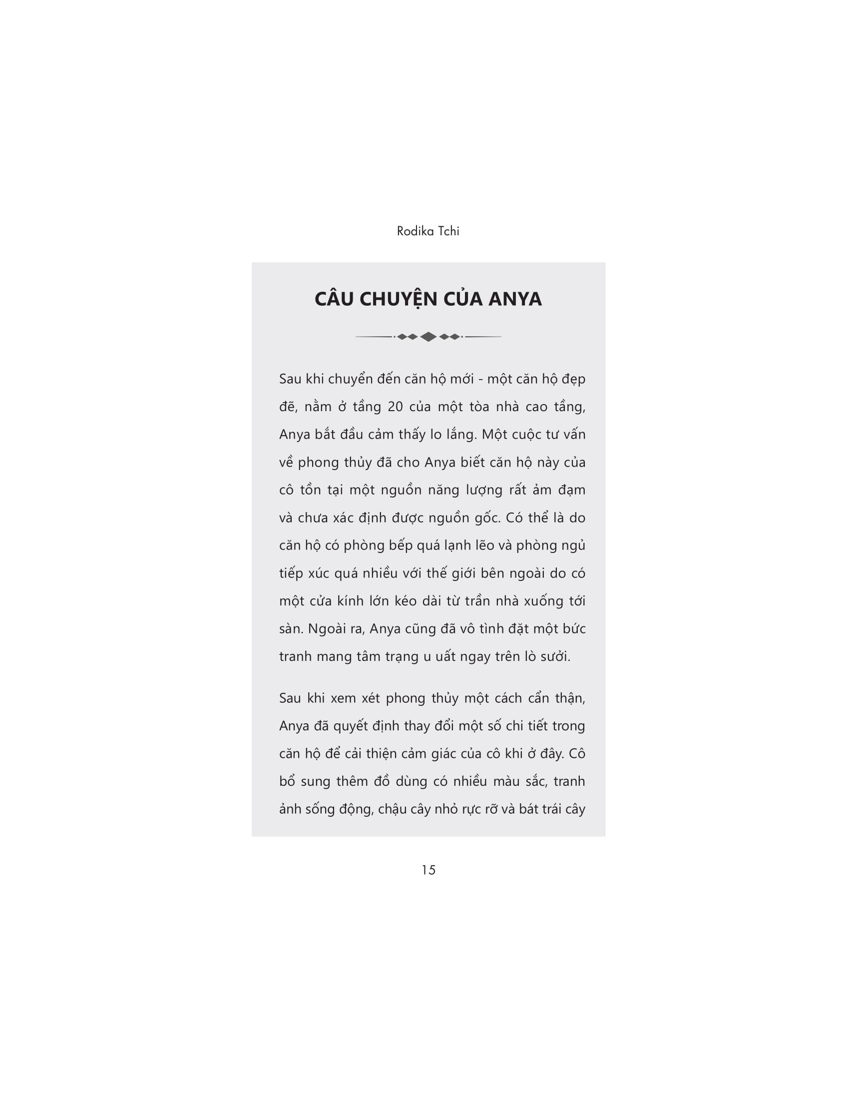 Nhưng với cuốn sách này, bạn có thể học cách thoát khỏi năng lượng tiêu cực bằng những chỉnh sửa đơn giản về mặt phong thủy đã được thử nghiệm theo thời gian, giúp tâm trạng nhẹ nhàng hơn và các mối quan hệ hạnh phúc hơn. Khi năng lượng trong không gian của bạn được giải phóng, ngôi nhà của bạn sẽ trở nên thoải mái và thực sự biến thành tổ ấm để bạn phục hồi năng lượng sau một ngày làm việc.
