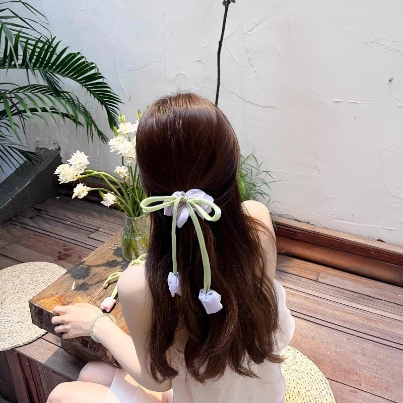 Xuất xứ: Trung Quốc Sản phẩm dây cột tóc bằng chất liệu Ruy băng mềm mại, tạo độ rũ nhẹ, phù hợp cho các bữa tiệc và kết hợp với váy voan, lụa