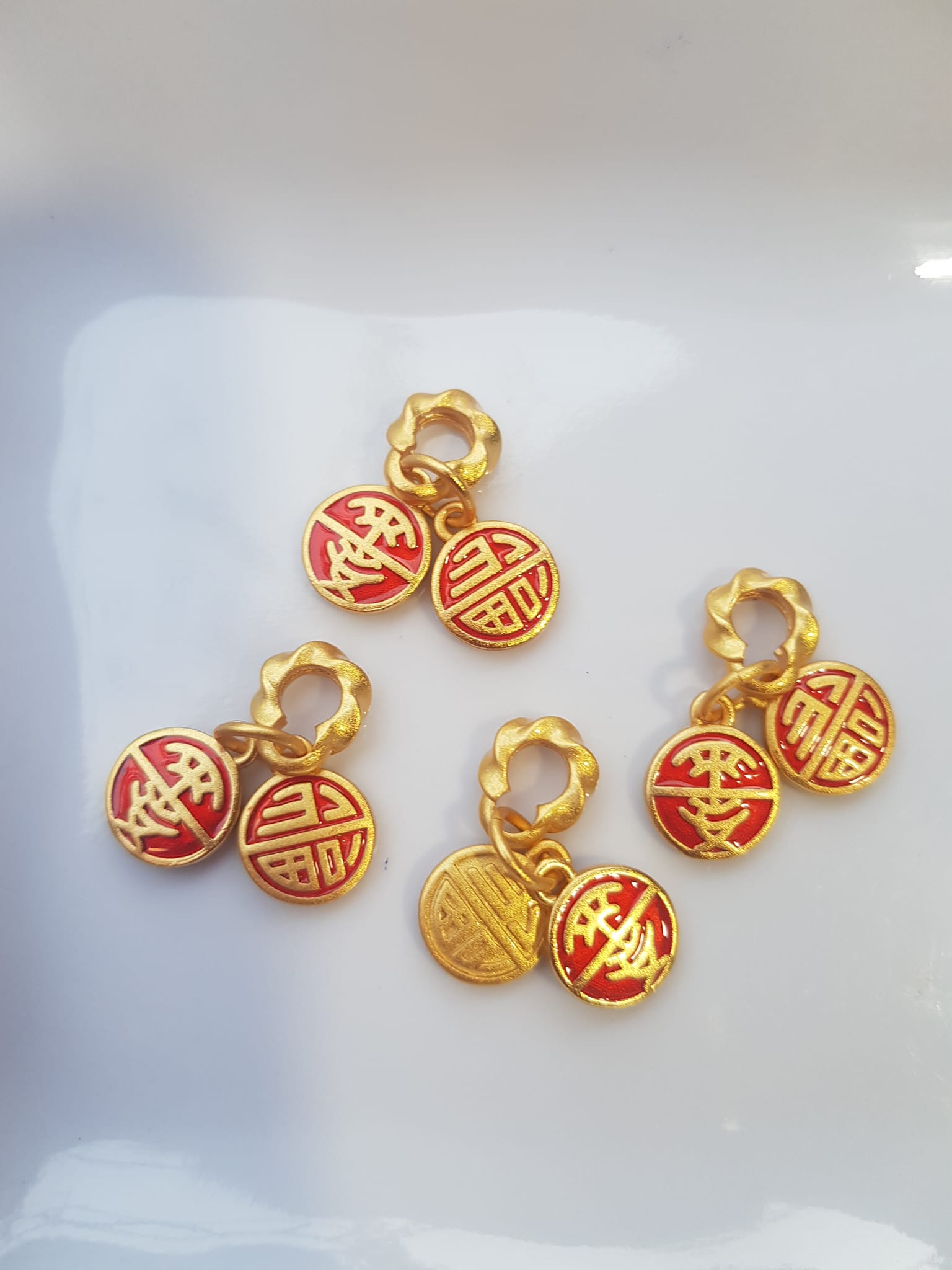 Hình 2 đồng tròn đỏ kiểu may mắn các chị em phối vào vòng tay của mình ạ